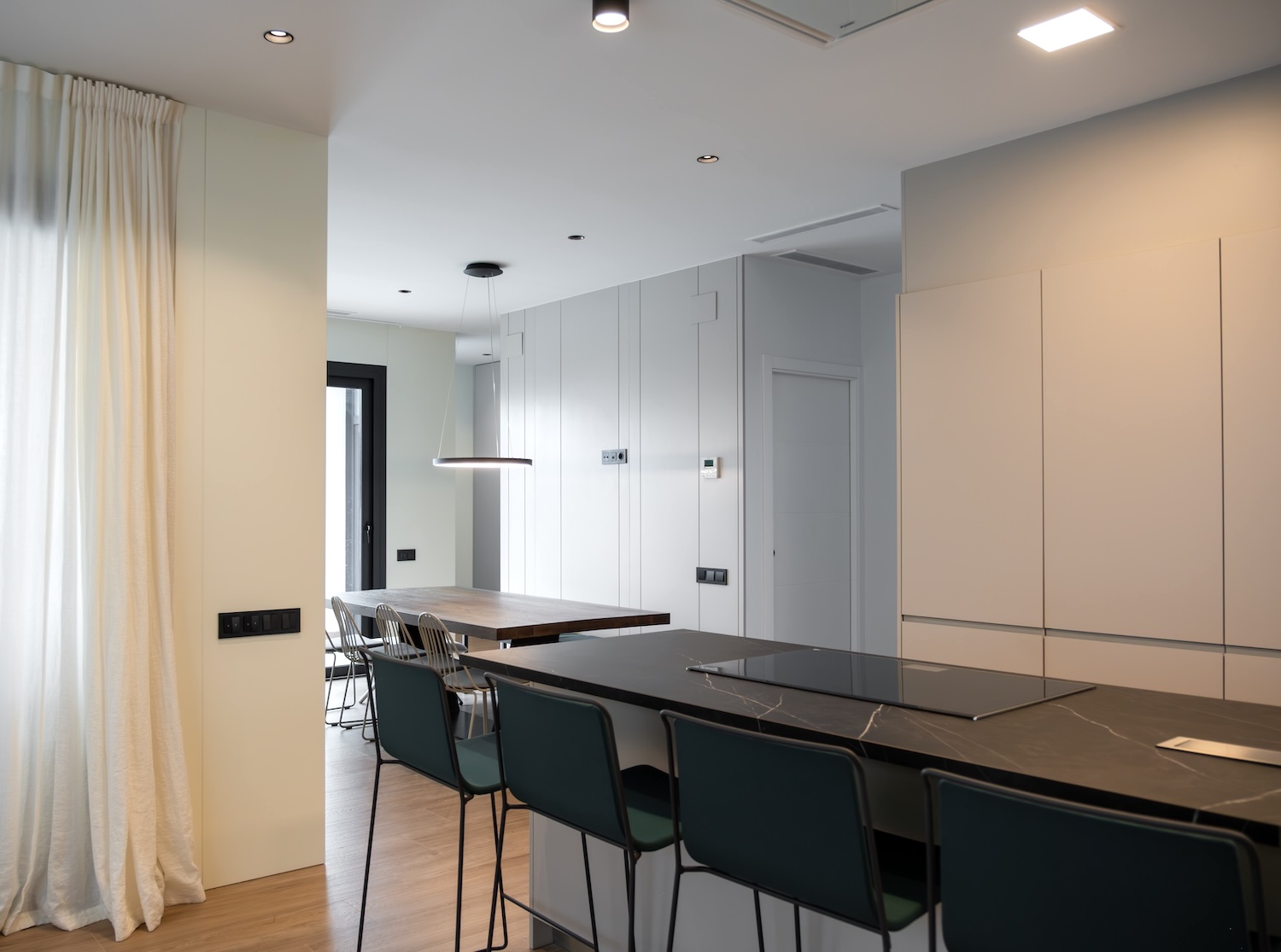 Nuestra labor en este proyecto ha sido totalmente transformadora. Hemos cogido un espacio comercial estático y lo hemos convertido en una vivienda moderna y acogedora, llena de vida y personalidad.